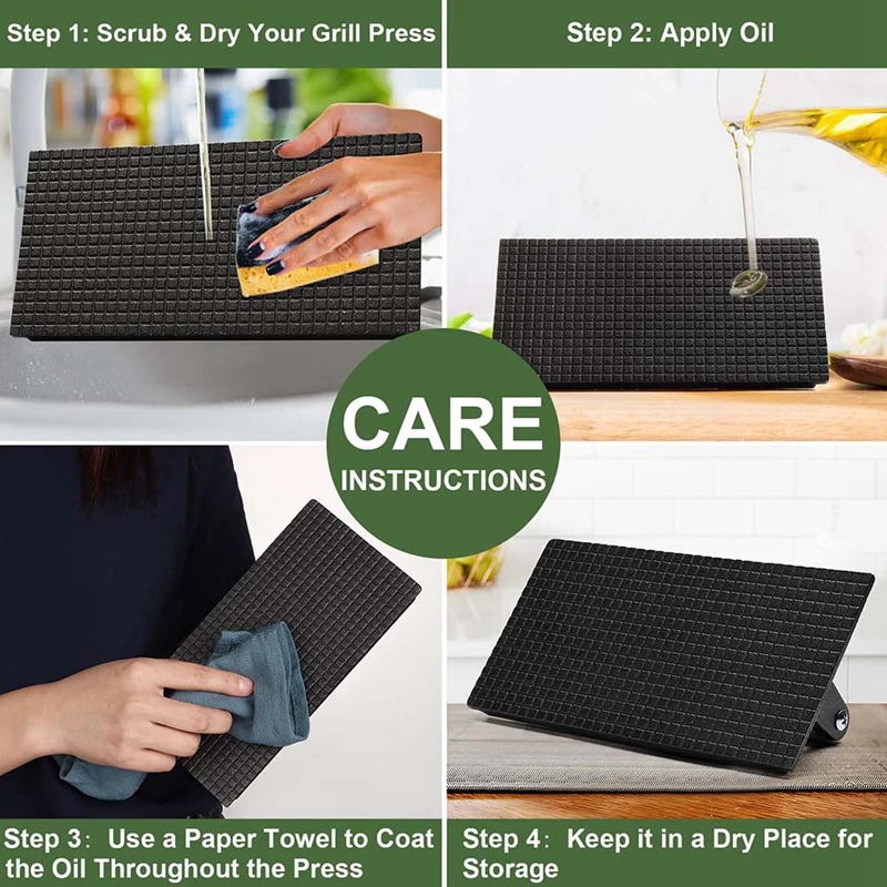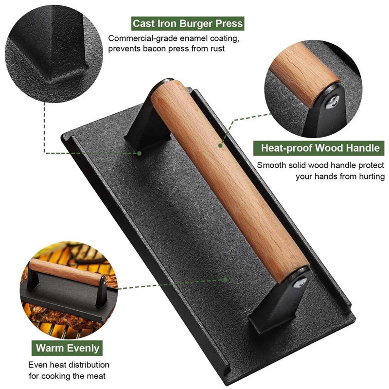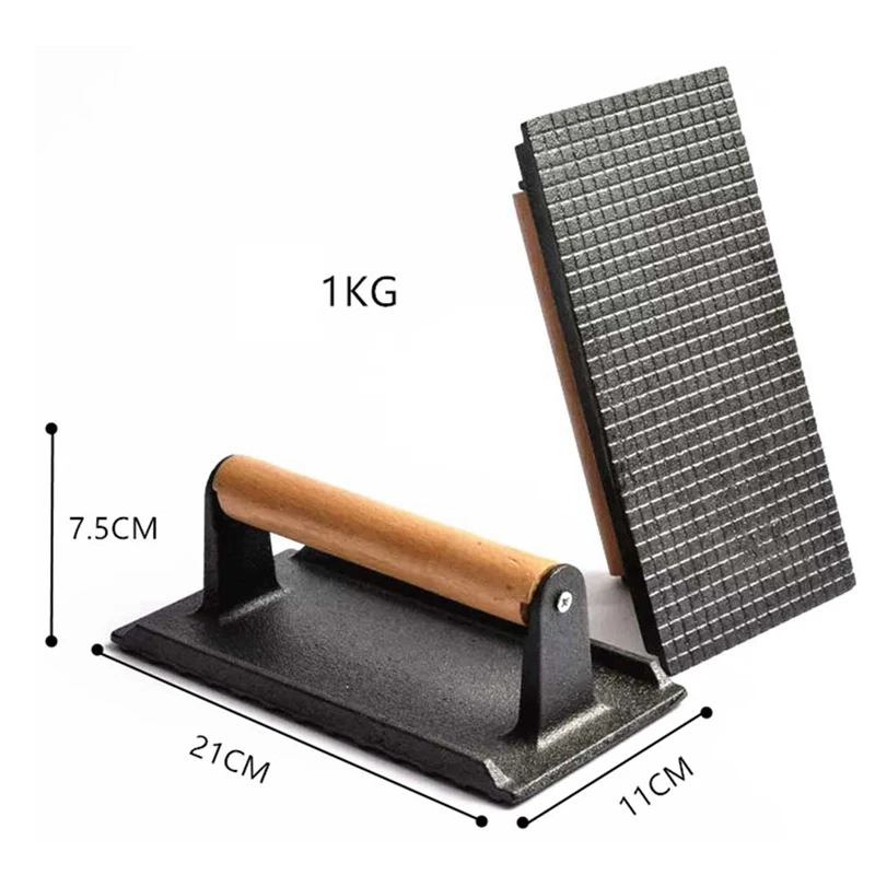 [Parrilla de hierro fundido resistente]: nuestra parrilla está hecha de hierro fundido resistente de calidad alimentaria. Utilice pesas para parrilla para eliminar la grasa y la grasa no deseadas y son aptas para horno, estufa, parrilla, sartén o fogata. La prensa también se puede curar como una sartén de hierro fundido para obtener una superficie antiadherente.